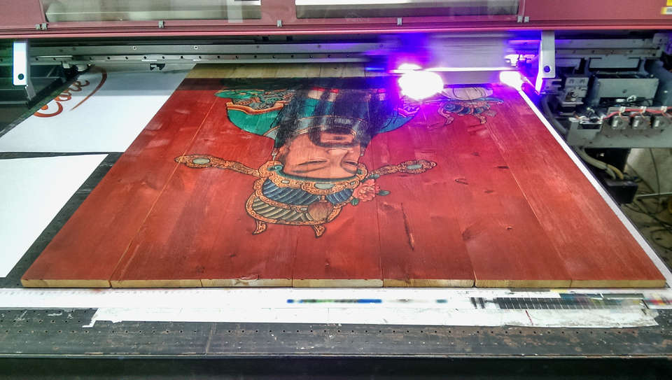 門板拼接對齊後直接噴繪,完美保留材料質感與特性。