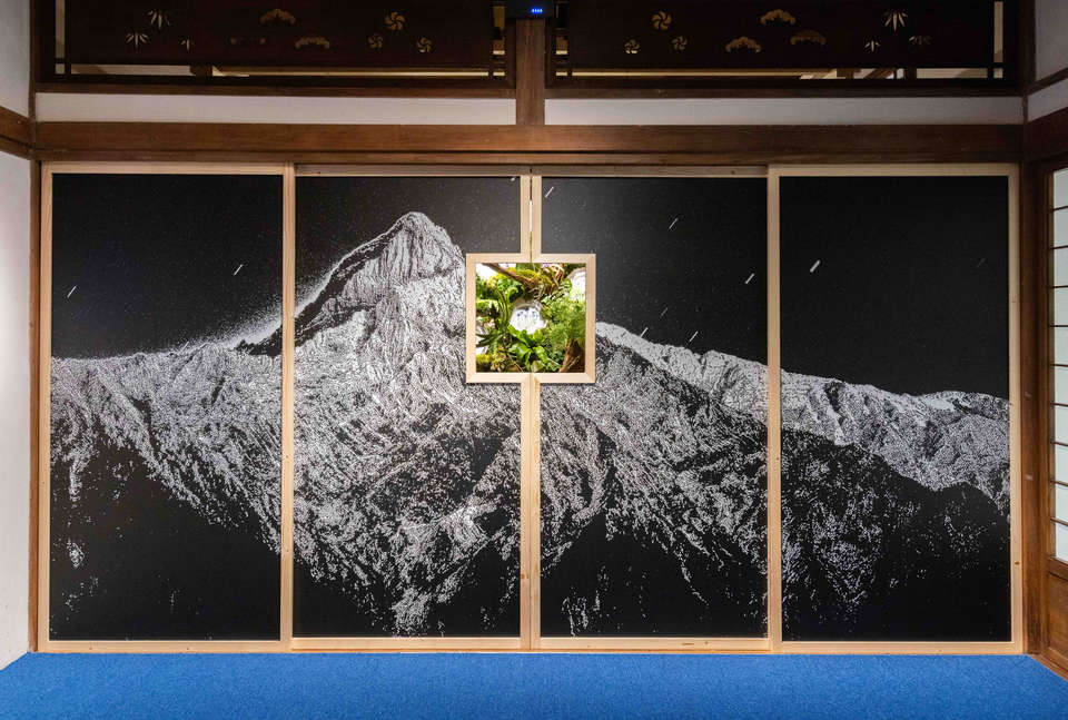 由攝影師「陳敏佳」捕捉百岳風景,多層次直噴在木板上,呈現不同深度的立體感。